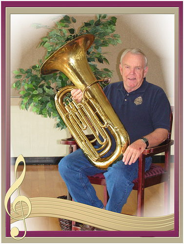 his beloved tuba. He was an active member of the New Horizons band in Dallas, Texas. He also lent his booming bass voice to several choirs