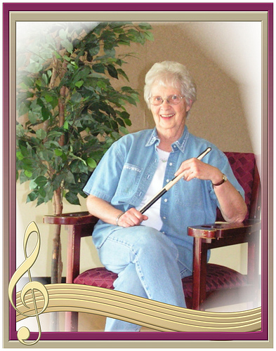 lady playing the drum set. She played in the New Horizon Band, in both Iowa and Dallas, and Upswing Jazz Band.