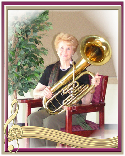creativity through murals, floral arrangements for the church alter table; as well as singing in the choir. Bonnie played baritone horn and was part of the Low Brass Choir - performing over